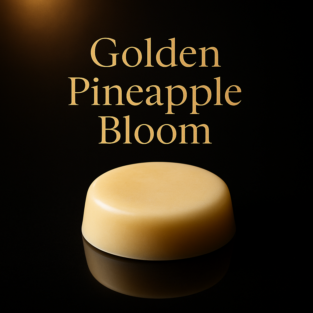 Golden Pineapple Bloom opens with bright pineapple nectar and a hint of citrus mist, softened by sheer floral tones of jasmine and white peach. A subtle banana cream note settles into the base, adding body and smoothness without presenting as a standalone scent. Vanilla silk and soft musk create a polished, creamy finish that feels refined rather than tropical.